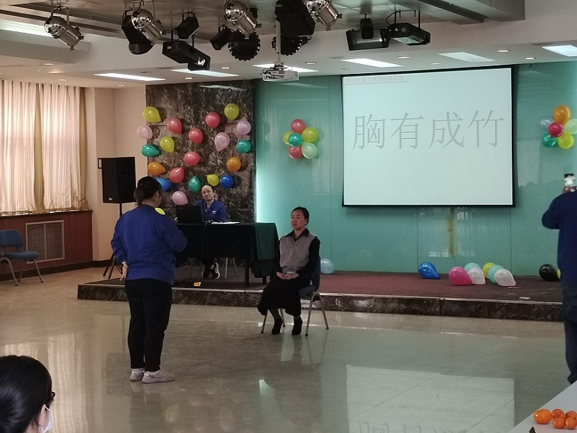 河冶住商的女工們歡聚在住商五樓多媒體大廳里,舉辦溫情茶話會---公司領導認真聽取女工意見,當場安排解決女工提出的各種問題。趣味小游戲---“心有靈犀”、“盲人敲鼓”,參賽者真情演繹,逗得觀眾捧腹大笑,并通過三輪抽獎,抽取了6名幸運女工。