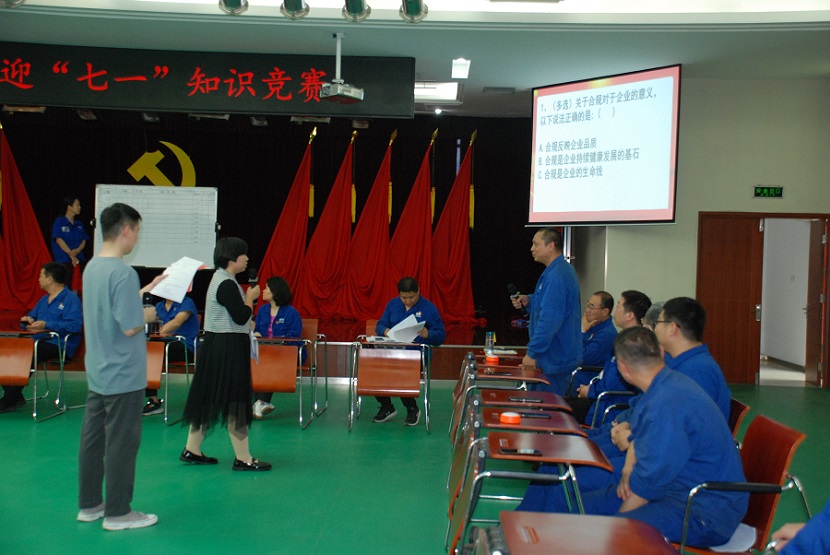 為迎接黨的102周歲華誕,深入學(xué)習(xí)貫徹習(xí)近平總書記重要講話精神,不斷創(chuàng)新學(xué)習(xí)形式、深化學(xué)習(xí)效果,2023年6月30日,公司黨群紀(jì)檢工作部組織了“2023年迎七一黨史知識競賽”活動(dòng)。公司黨委副書記梁敬斌、總法律顧問劉鵬杰、工會主席趙金伶出席比賽現(xiàn)場。公司九支隊(duì)伍參加比賽,每支隊(duì)伍由三名隊(duì)員組成,分別為各支部支委、正式黨員和入黨積極分子。