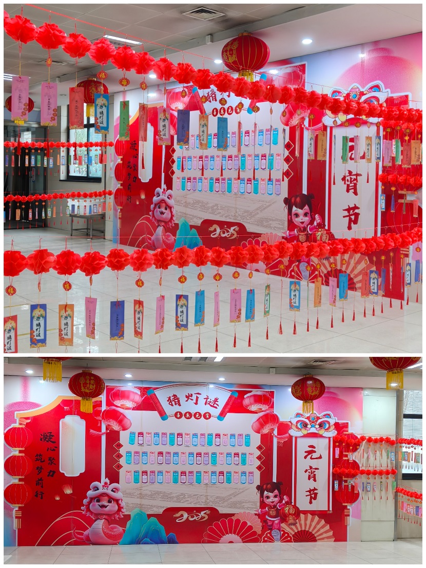 活動當(dāng)天,生活區(qū)食堂就餐大廳被裝點(diǎn)得煥然一新。頂棚高懸著大紅燈籠,大廳的柱子掛滿了彩色燈謎紙條,洋溢著濃厚的節(jié)日氛圍。員工們一踏入食堂,就被這喜慶的場景所感染,迫不及待地投入到活動中。