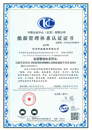 2020年2月,公司依據(jù)GB/T23331-2012/ISO50001:2011標(biāo)準(zhǔn),建立了能源管理體系,通過(guò)了中聯(lián)認(rèn)證中心(北京)有限公司認(rèn)證;